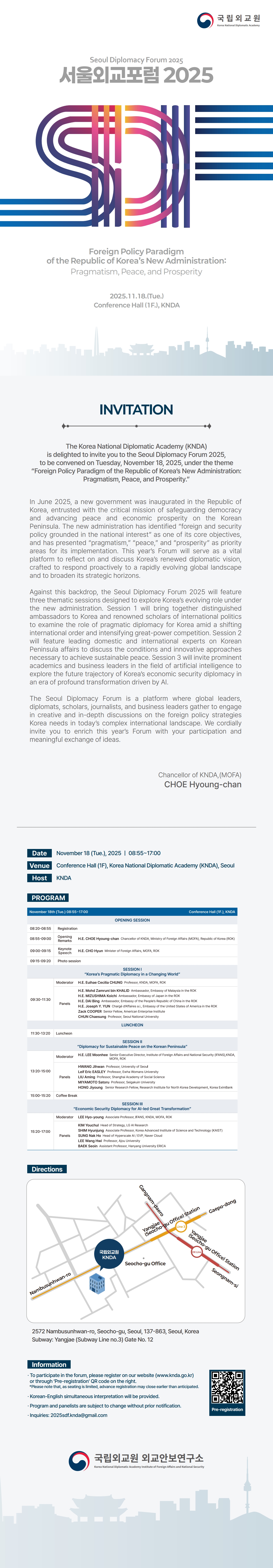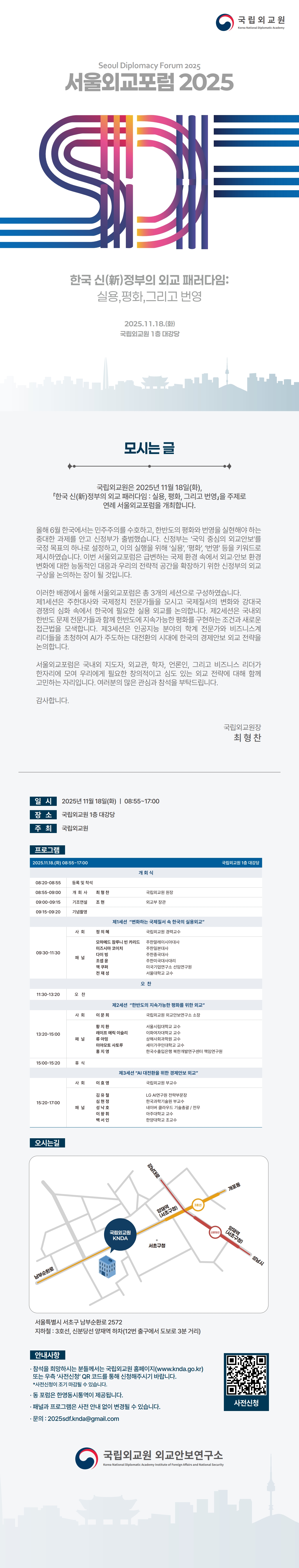 o 일시 및 장소 : 2025. 11.18(화) 08:55-17:00, 국립외교원 1층 대강당