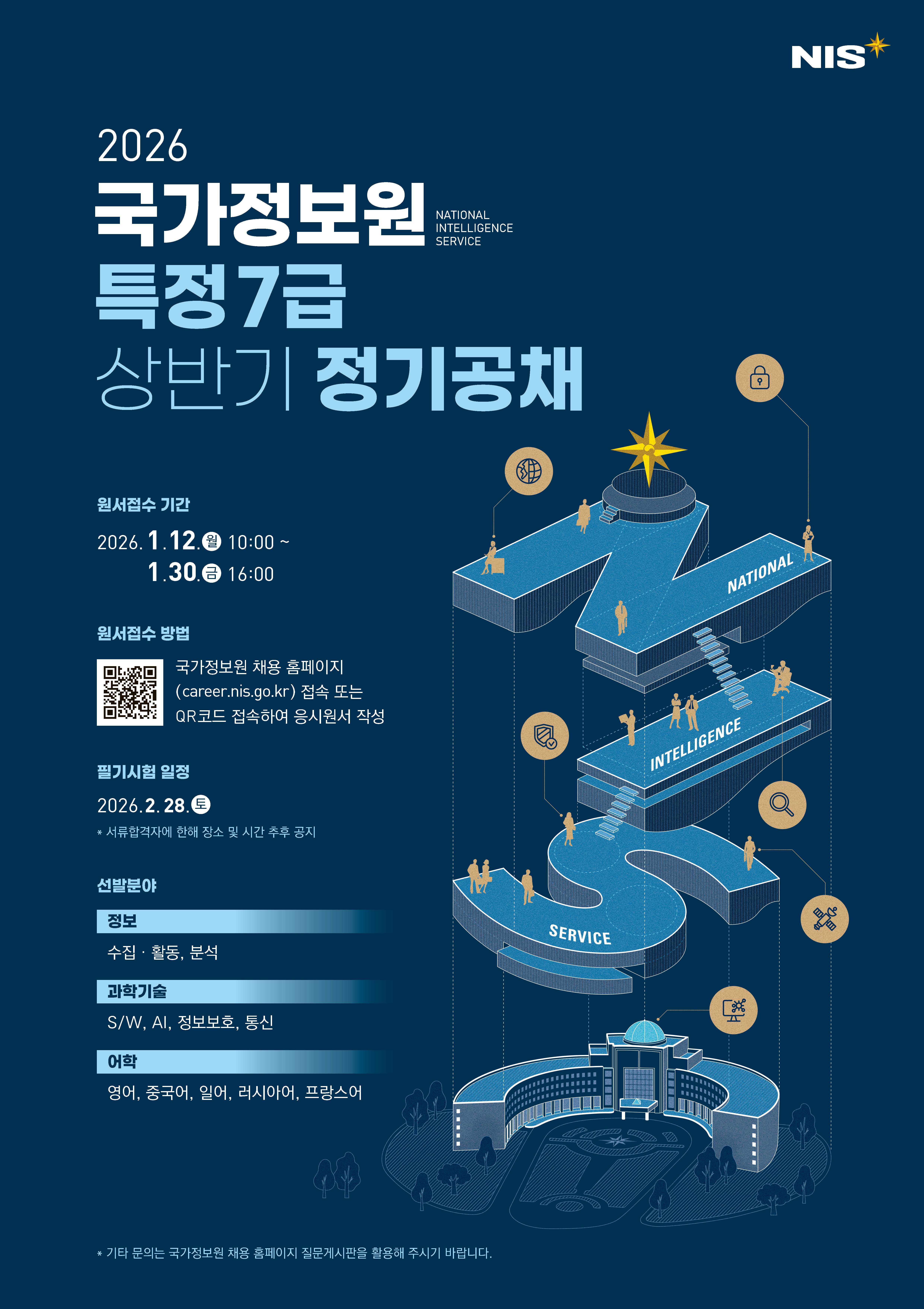fnctId=bbs,fnctNo=4530 [행사/홍보] [인재개발팀] 2026 상반기 국가정보원 특정 7급 채용설명회 안내 작성일 2025.12.22 수정일 2025.12.22 작성자 스포츠과학부 조회수 61 글번호 150254 첨부파일 첨부파일이(가) 없습니다.