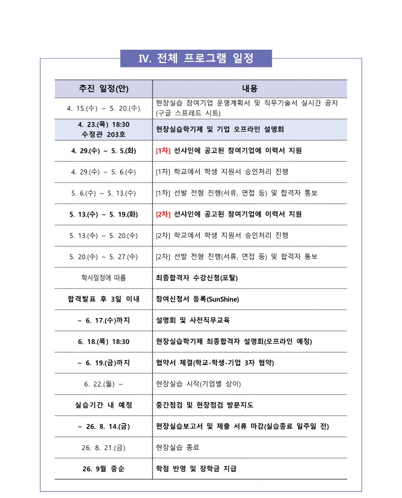 fnctId=bbs,fnctNo=4530 [교내 공지] [현장실습운영팀] 2026-하계 현장실습학기제(Co-op) 참여학생 모집 안내 작성일 2026.04.08 수정일 2026.04.08 작성자 스포츠과학부 조회수 7 글번호 153976 첨부파일 첨부파일이(가) 없습니다.